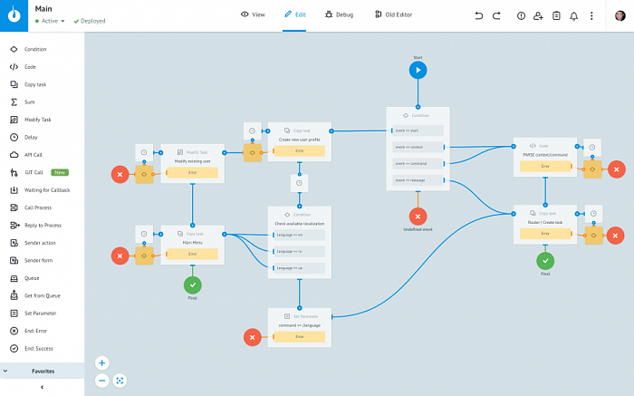 • Corezoid. Це універсальна метамова, яка дає змогу швидко створювати нові та керувати існуючими API в єдиному інтерфейсі.