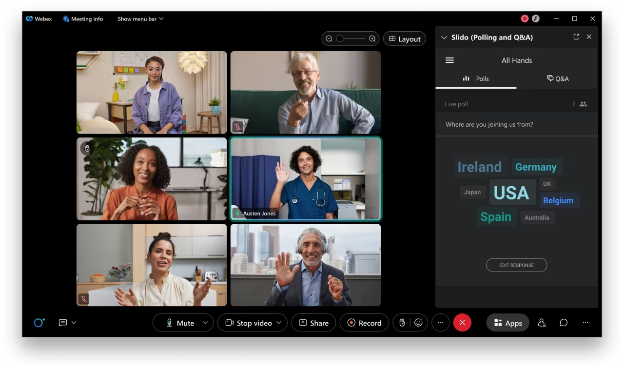 • Webex. Веб-програма Meetings дає змогу приєднатись до нарад, вебінарів, event-нарад та сеансів навчання за допомогою одного лише веб-браузера.