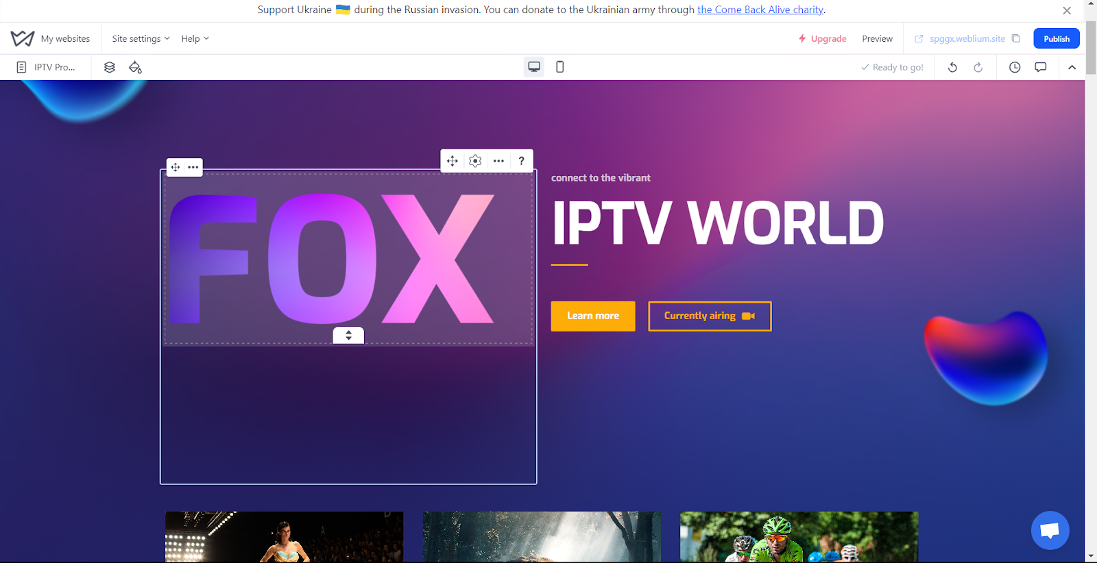 • Weblium — український конструктор сайтів. У розпорядженні користувача надається понад 300 шаблонів (безплатних). Сайт надає SEO підтримку та систему CRM.
