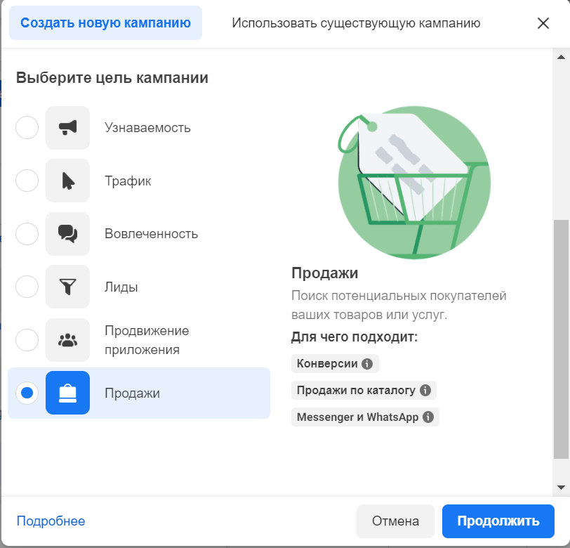 Як його знайти? Просто переходимо в Ads Manager та створюємо кампанію на продажі.
