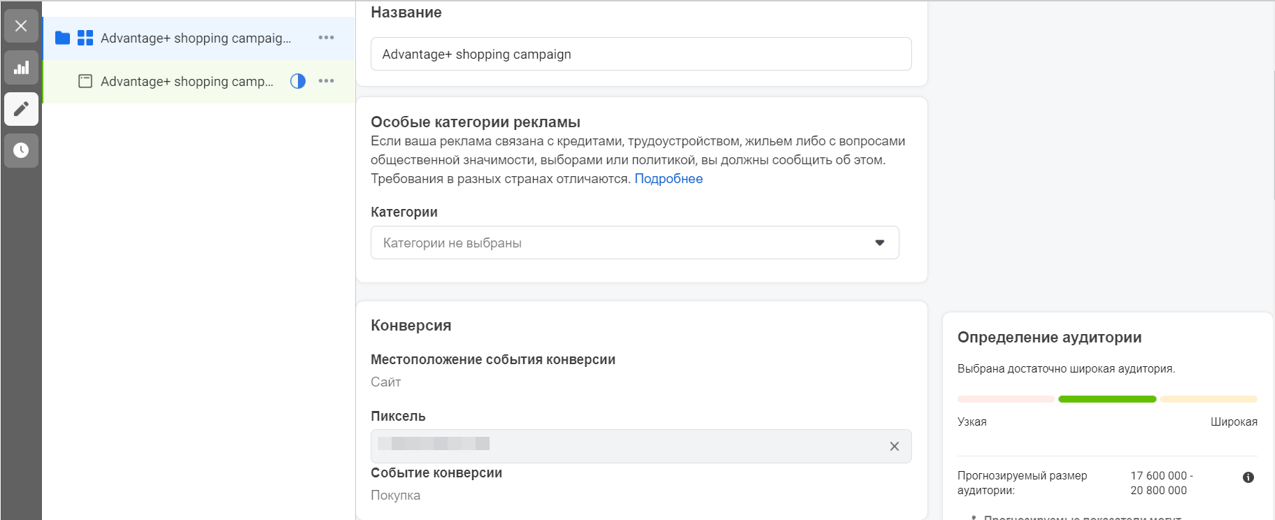 Деякі інструменти будуть вам давно знайомі, просто тепер під іншою назвою, але і з новими ми теж познайомимося. Якщо ви вже активно ведете кілька проєктів, то, напевно, помітили, що не у всіх рекламних кабінетах у повному обсязі доступні функції Advantage+. Так, вони перебувають у стадії бета-тестування й поступово впроваджуються в кабінети. Але на всіх рівнях рекламної кампанії можна зустріти нові інструменти. Розглянемо докладніше створення кампанії конверсії.