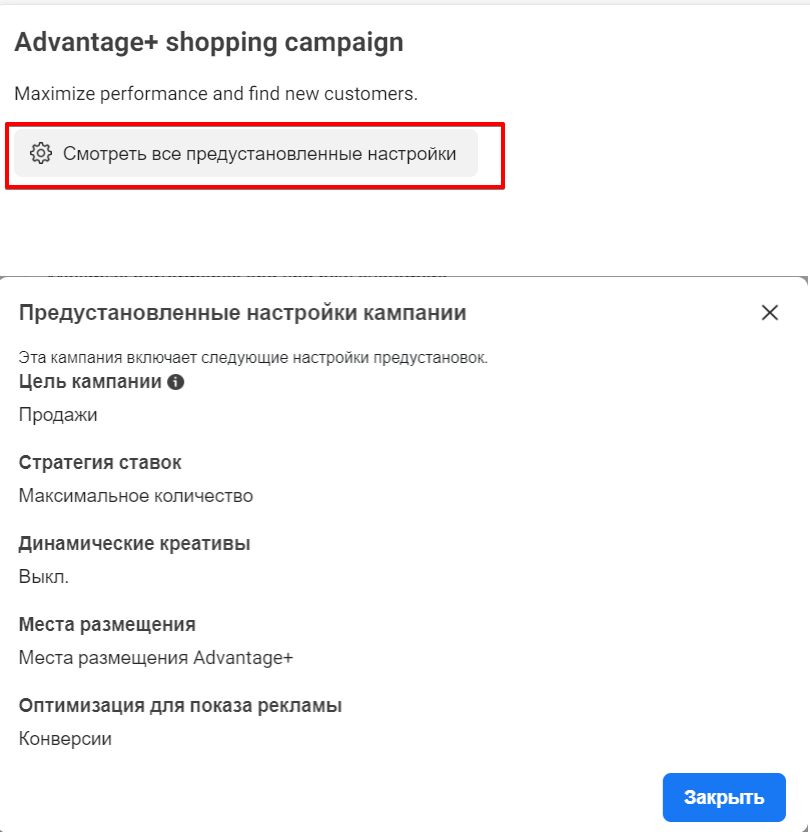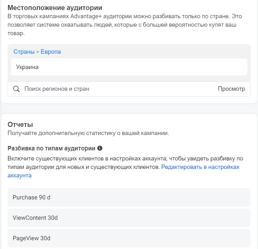 Створення Advantage + shopping campaign