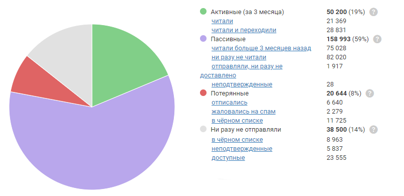 З часом частка неактивних підписників збільшується. За даними дослідження MarketingSherpa і порталу TexTerra: