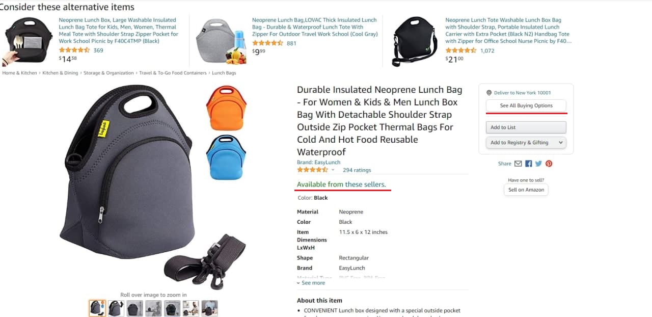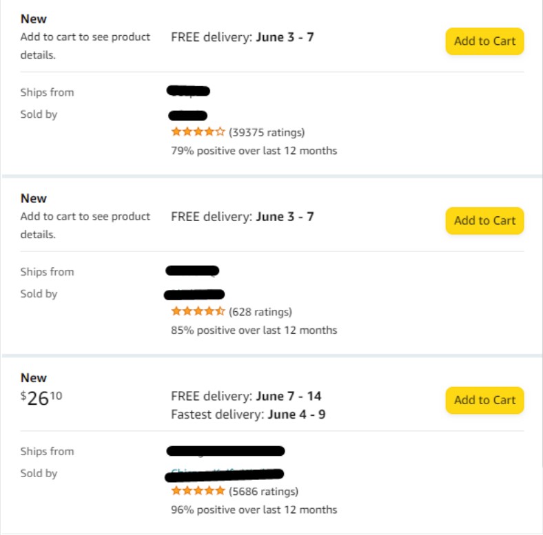 Ви побачите список інших продавців, які продають на цьому лістингу, навпроти кожного буде кнопка «Add to Cart».