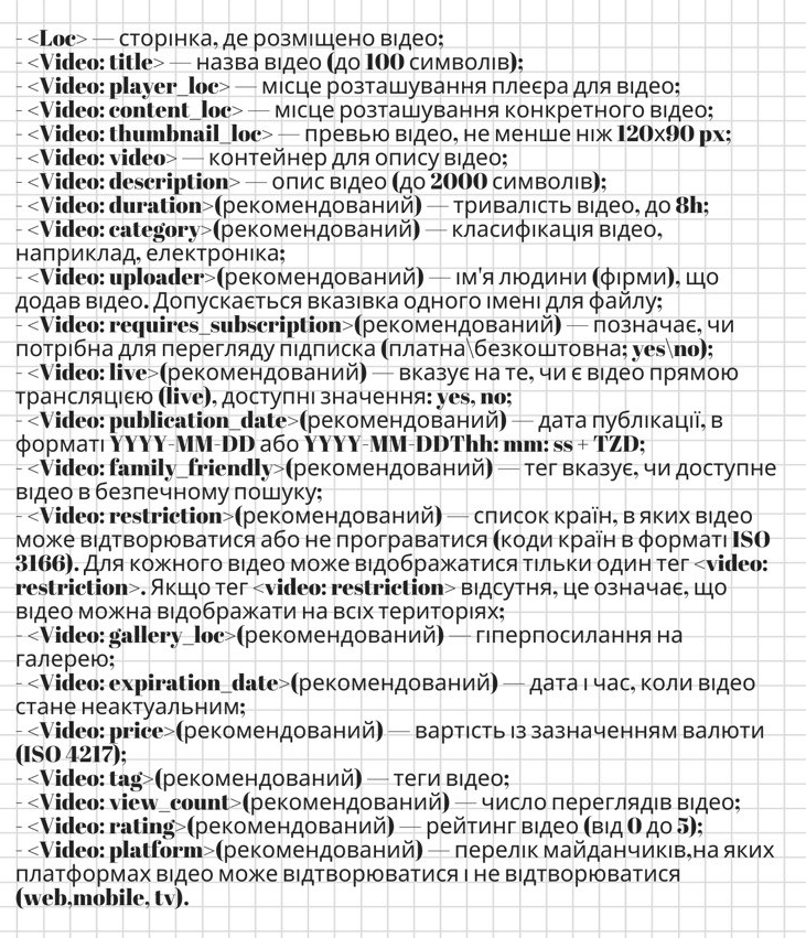 Для поліпшення сканування і ранжування пошуковими ботами відео-контенту слід створювати карту сайту Video Sitemap. Індексація відео-контенту Яндексом поки не пов'язана з файлами sitemap.