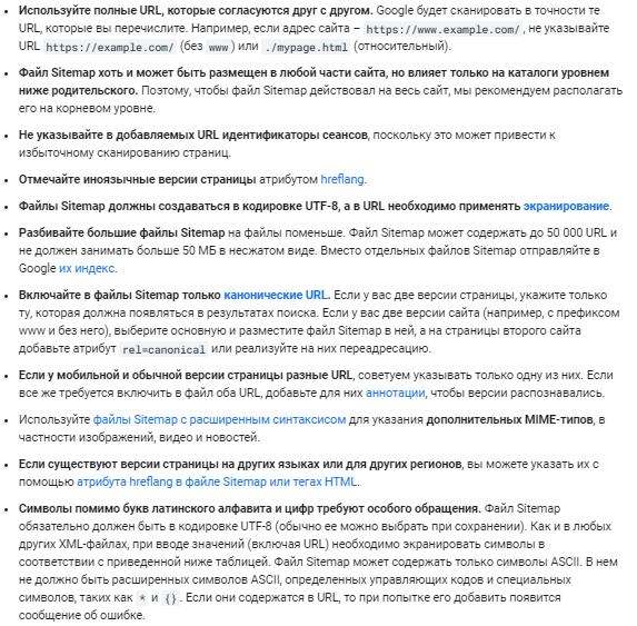 У текстовому файлі формату XML перераховані всі обов'язкові до індексування сторінки ресурсу з урахуванням їх підпорядкованості. В xml sitemap допустимо позначення до 50 тисяч посилань. Файли важче 50 МБ потрібно архівувати, дотримуючись розширення xml.zip або xml.tar, також є варіант формування декількох карт шляхом збору їх в групу. Посилання з карти сайту повинні вказувати на повний шлях до файлу, як тут http://www.example.com/.
