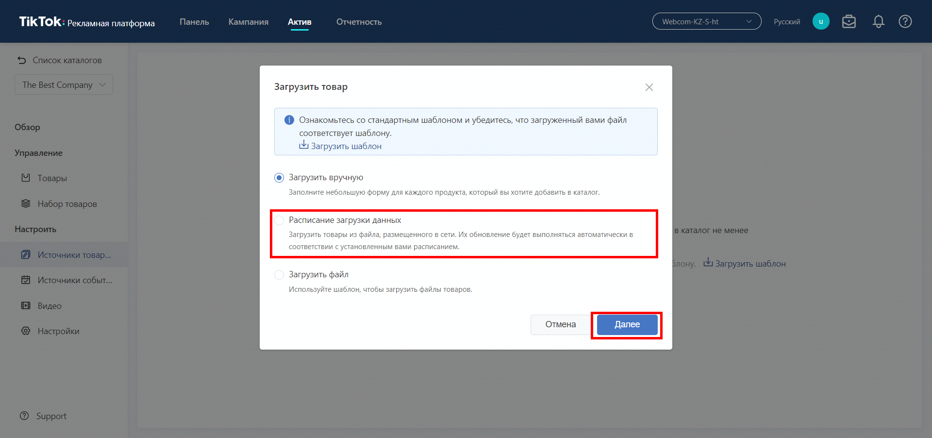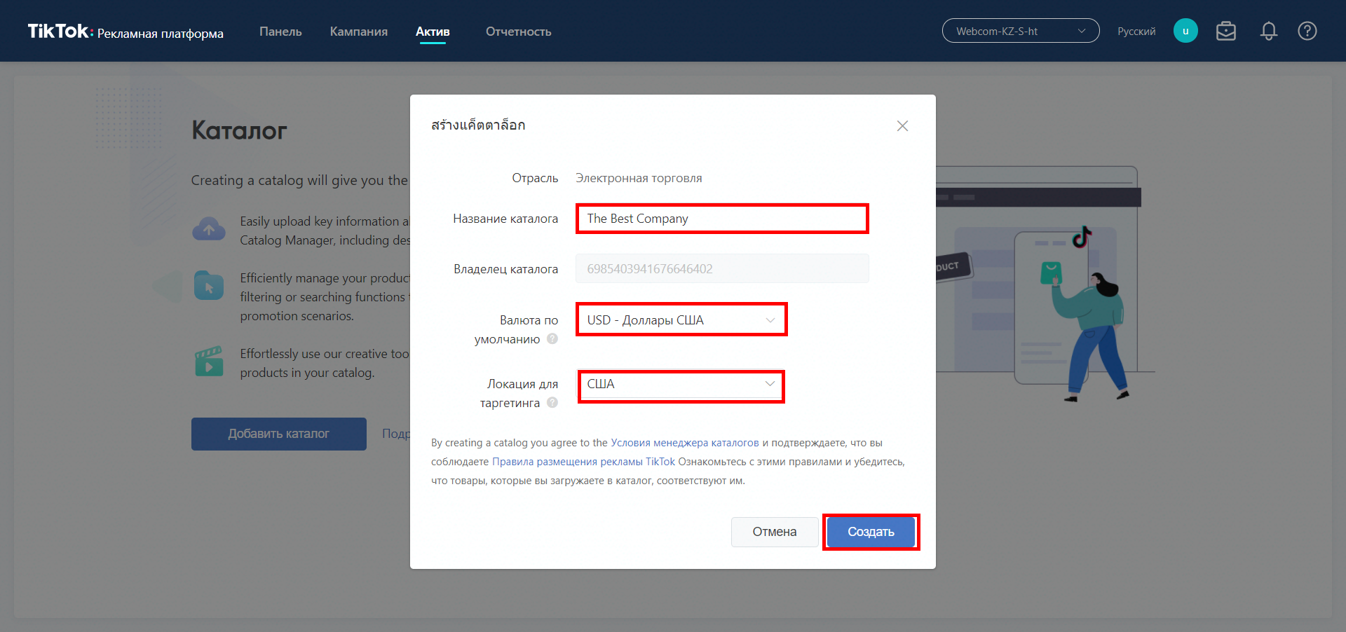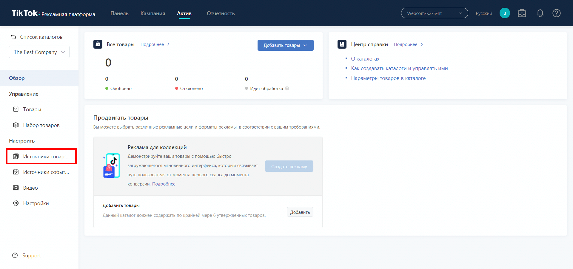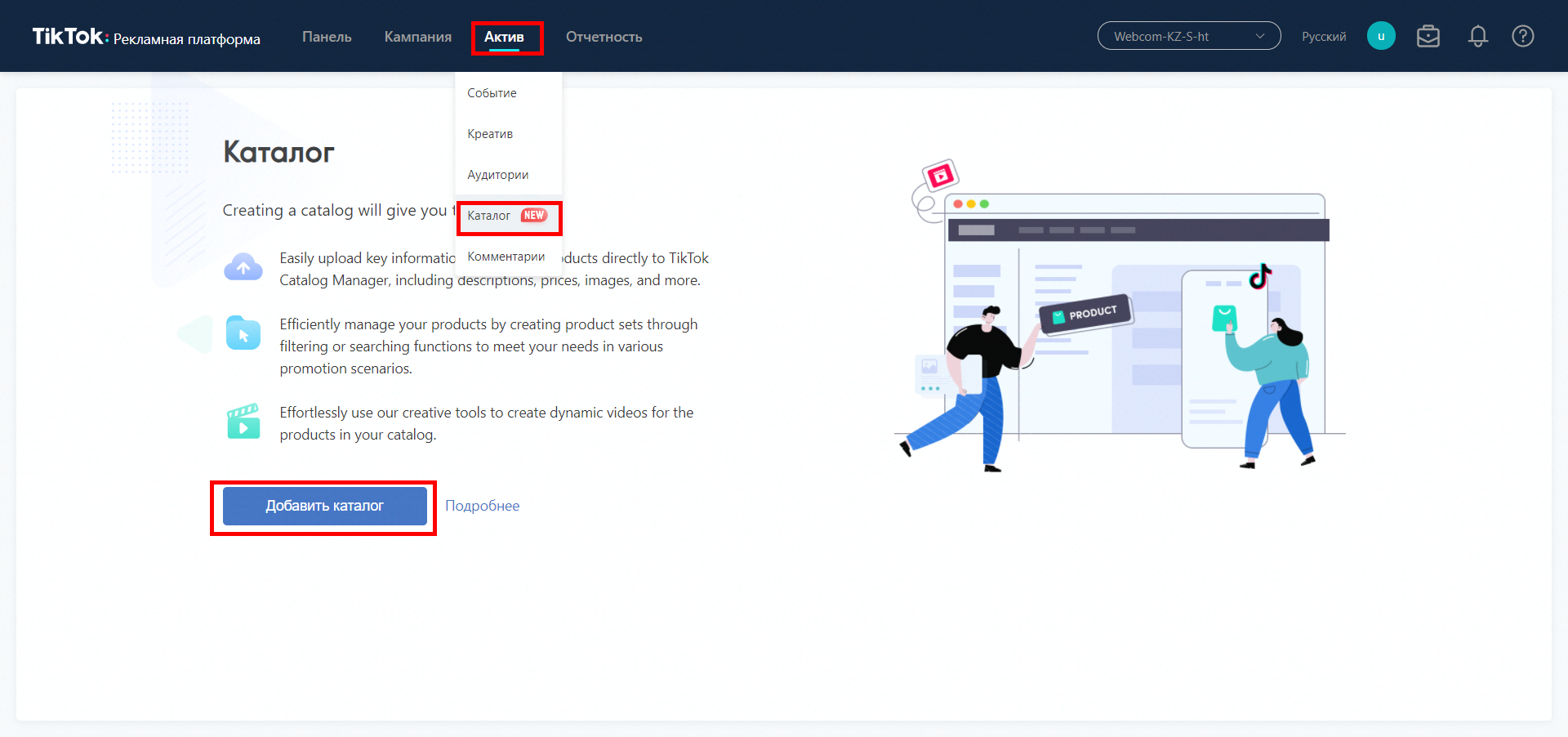 - Заходимо в рекламний кабінет Тік Ток > Актив > Каталог. Натискаємо на кнопку «Додати каталог».