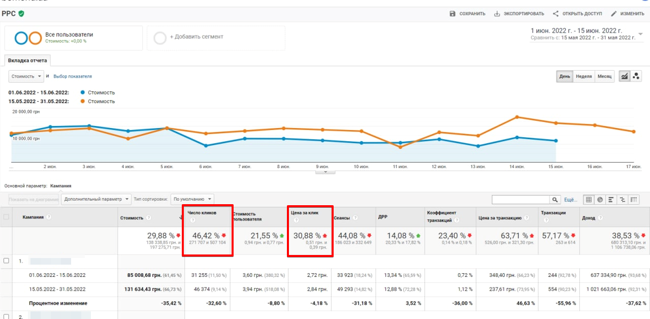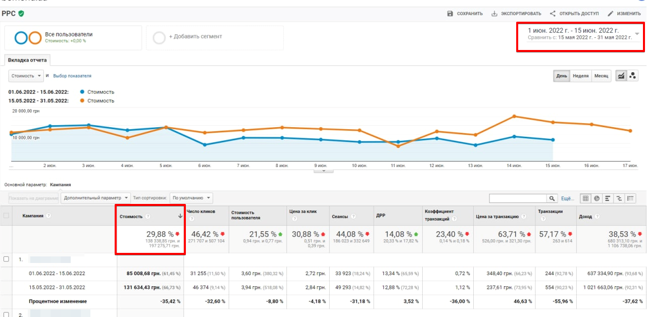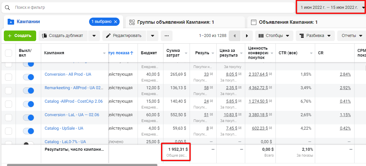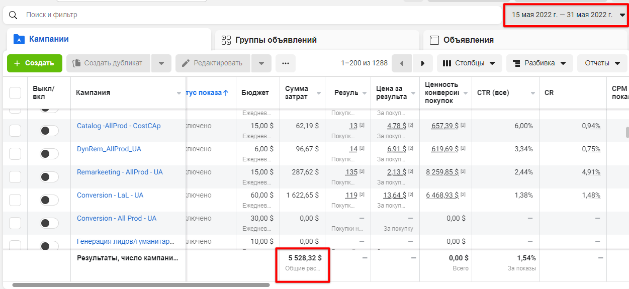 У такий спосіб ми можемо точно оцінити вплив фейсбук реклами. І подивимося, як змінилися показники ефективності в рекламі.