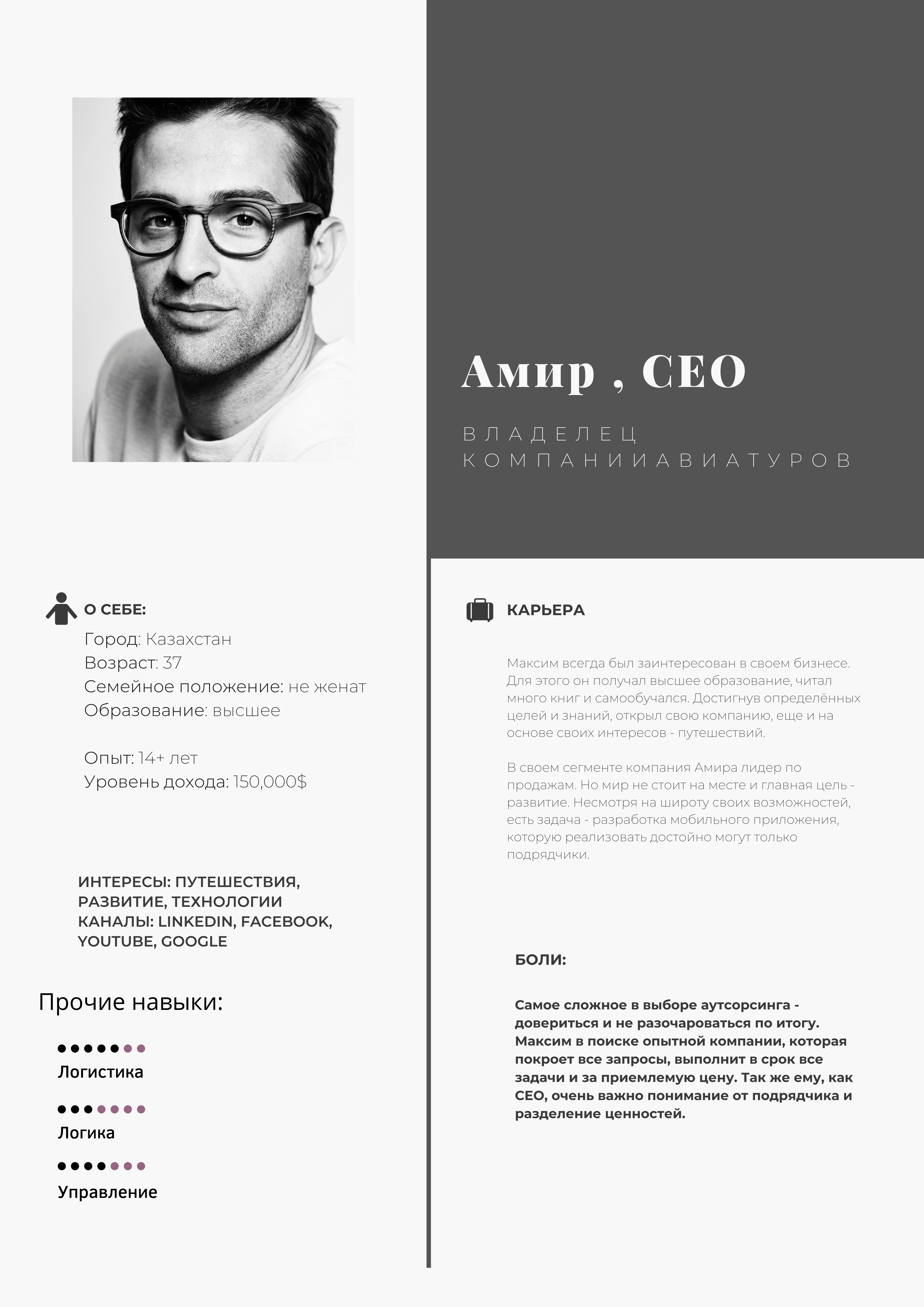Найскладніше у виборі аутсорсингу — довіритися та не розчаруватися за підсумком. Амір у пошуку досвідченої компанії, яка покриє всі запити, виконає вчасно всі задачі та за прийнятною ціною. Також йому як СЕО дуже важливе розуміння від підрядника та поділ цінностей.