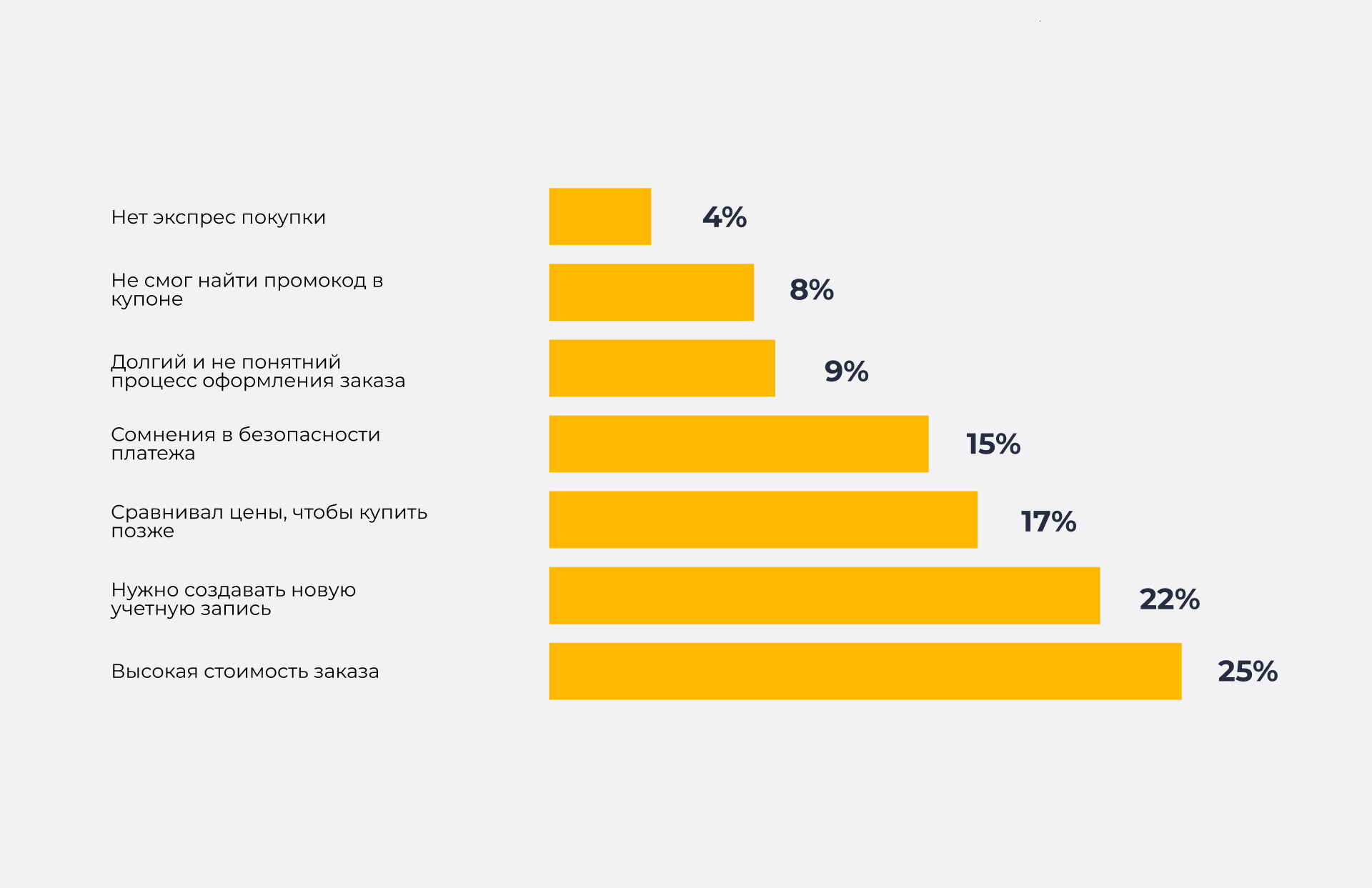 І ми впевнені, що з чимось із цього списку ви стикалися. Ми провели невелике дослідження та з'ясували, що зупиняє клієнтів від завершення покупки.
