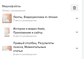 Змінити — переходячи на неї, ми можемо вибрати інше зображення або відео для конкретного плейсменту.