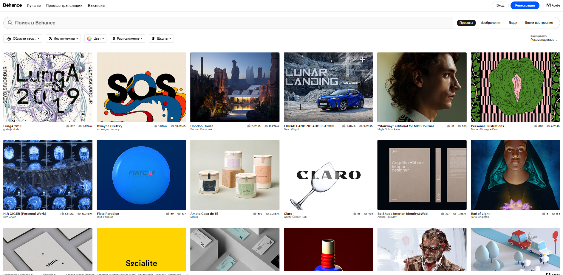 - Bēhance — площадка, где своими работами делятся фотографы, дизайнеры, иллюстраторы со всего мира. Здесь можно встретить и начинающих специалистов, и арт-директоров крупных рекламных агентств, которые выкладывают свои и обсуждают чужие работы.