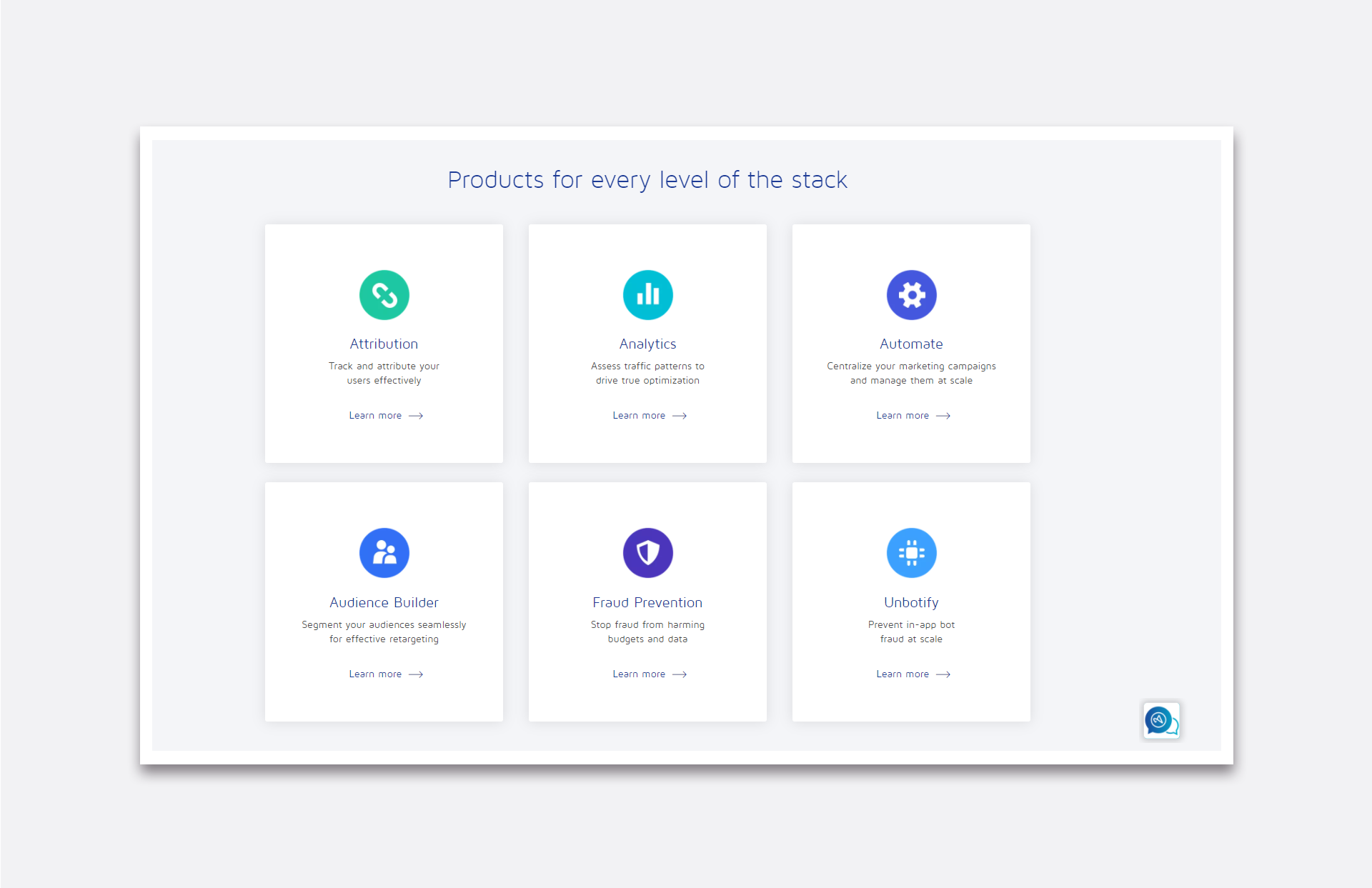 У Adjust є окремі продукти для атрибуції, аналітики, конструювання аудиторії, автоматизації та захисту. Ви можете використовувати тільки ті з них, що потрібні вашому бізнесу. Також можна вибрати комплексні рішення для ігор, фінансових додатків, e-commerce, сервісів бронювання для подорожей.