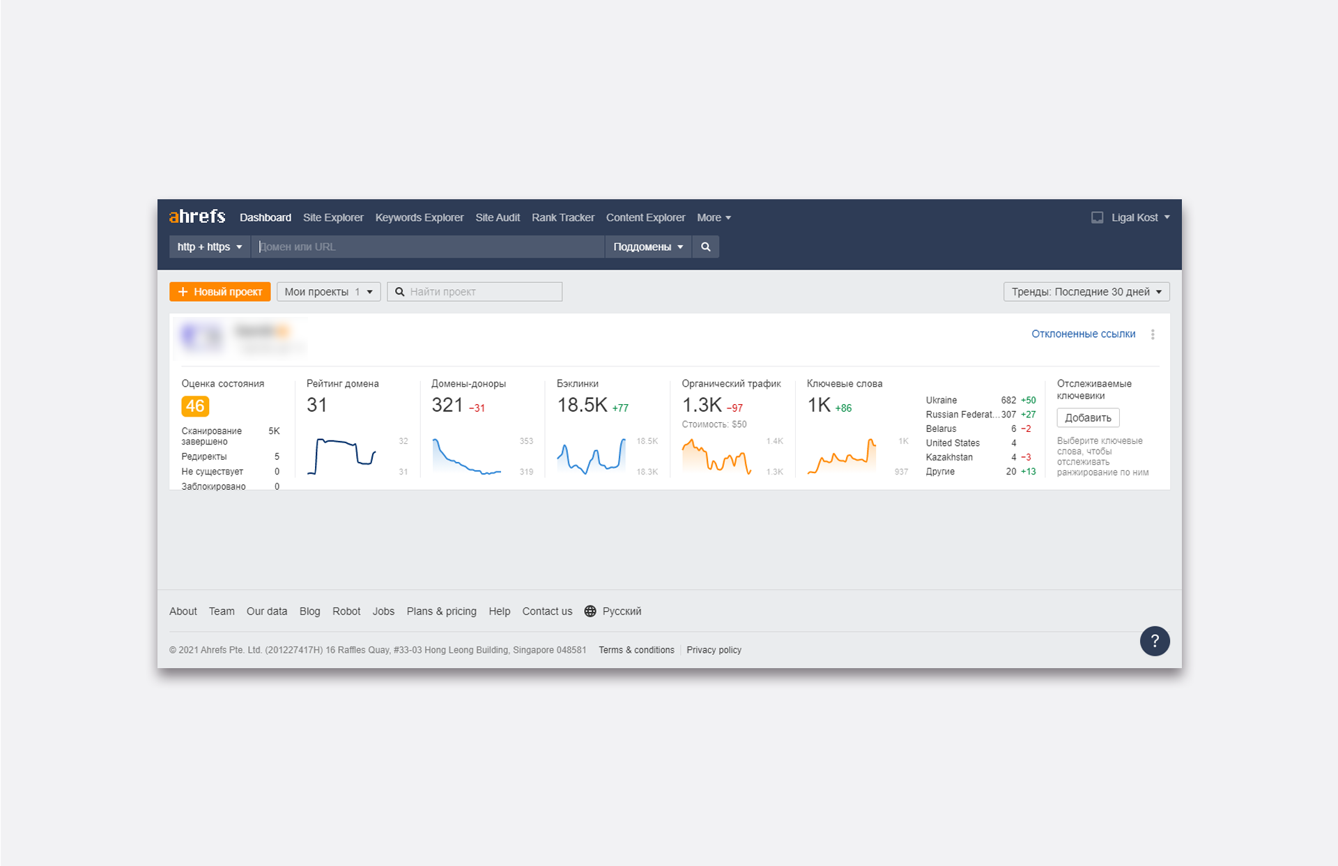 Ahrefs — зручний сервіс для seo-фахівців, з великим набором усіх необхідних інструментів для оптимізації сайту і його просування. Він допоможе знайти проблеми сайту, зібрати оптимальні ключі та місця для посилань. Ахрефс збере дані за вашими конкурентами і підкаже, як створювати контент і де його розміщувати, щоби поліпшити свої позиції. Крім потужної технічної частини та комфортного для користувача інтерфейсу, з підпискою на Ahrefs ви отримаєте підтримку унікального співтовариства і творців софта, які допоможуть досягти поставлених цілей.
