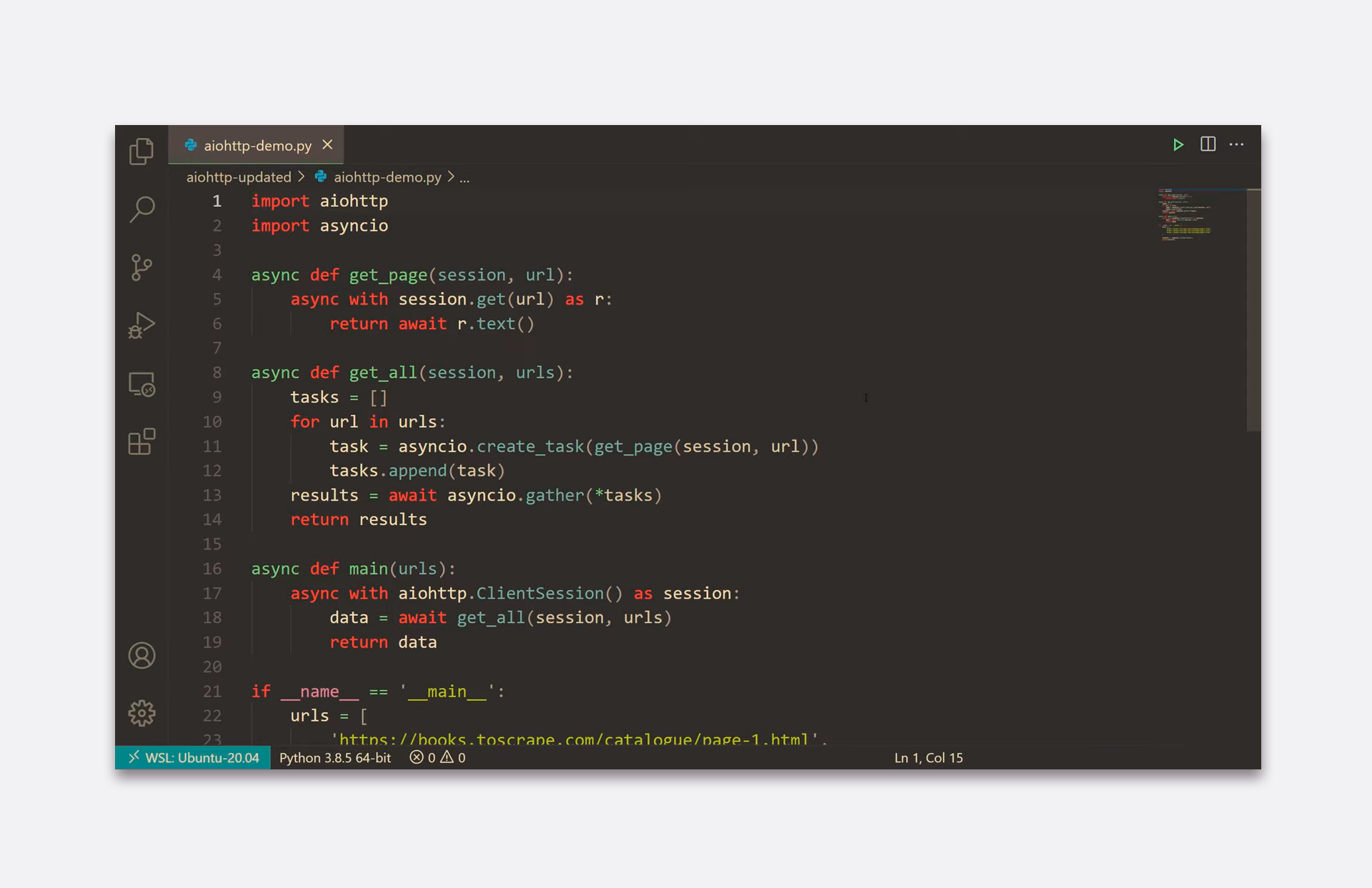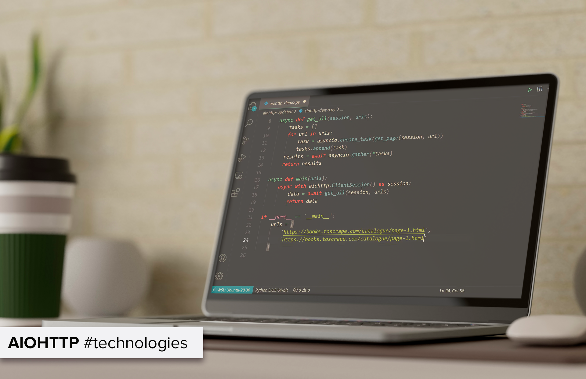 Aiohttp — асинхронний HTTP-клієнт/сервер для модуля Asyncio. Це бібліотека мови Python, яка потрібна для виконання клієнтських запитів та створення вебсервер із потоковою видачею та вебсокетами.
