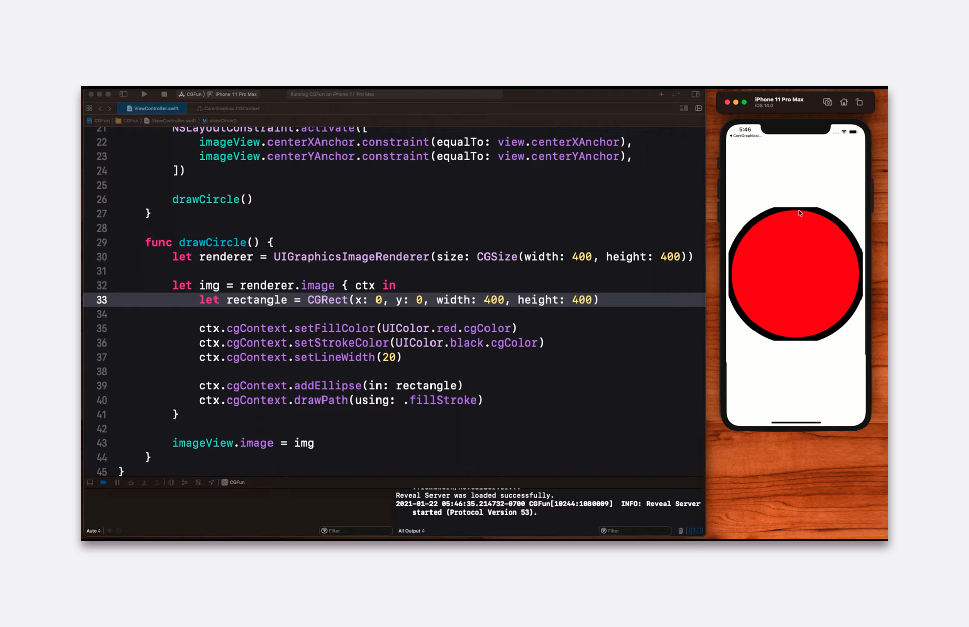 Core Graphics — це частина UIKit, середовище векторної графіки, з яким просто створювати елементи інтерфейсу. Це дуже зручний низькорівневий інструмент, використання якого гарантує, що намальовані зображення будуть однаково коректно відображатися на всіх версіях смартфонів і планшетів Apple. У тому числі й тих, які з’являться в майбутньому, з більшою щільністю пікселів. Усі елементи інтерфейсу програми, з якими буде взаємодіяти користувач і іншу просту 2D-графіку ефективніше і вигідніше створювати саме з Core Graphics.