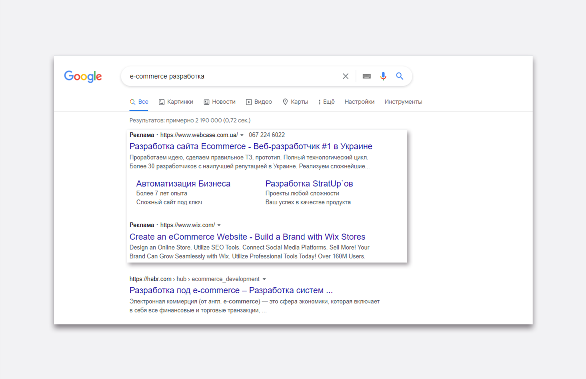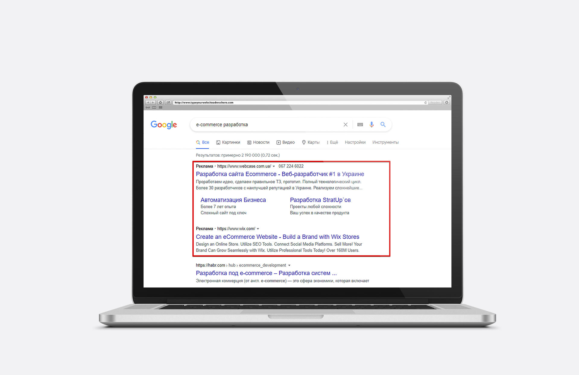 Контекстна реклама Google Ads — потужний інструмент інтернет-маркетингу, який проявив себе на українському ринку як один із найефективніших способів збільшення прибутку компанії й підвищення впізнаваності бренду. Серед переваг контекстної реклами ненав’язливість, простота і швидкість запуску, збільшення продажів за мінімальними вкладеннями. За допомогою Google Ads ми допоможемо вашому бізнесу зайняти провідні позиції, обігнавши конкурентів.