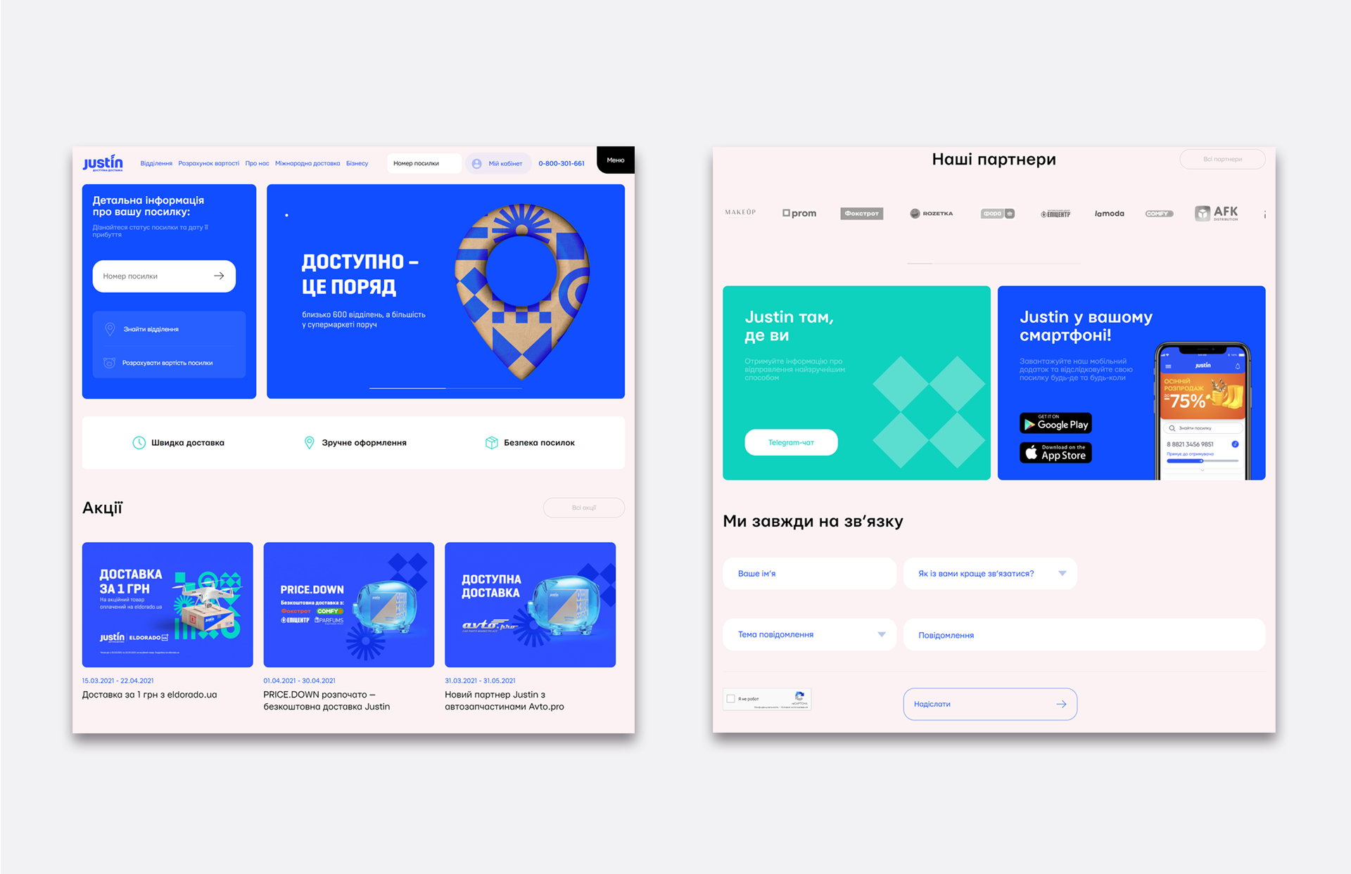 Justin — найновіший із сервісів доставки в Україну. Його вигідно приєднати, якщо ваші клієнти ходять за покупками в магазини Fozzy Group або часто замовляють товари з Польщі, США та Китаю. Співпраця з Justin і інтеграція їхніх API доступні юридичним особам та ФОП, на правах укладення договору співпраці. Підключення додаткового сервісу доставки не додасть вам значних витрат, але покаже вашу турботу про клієнтів.