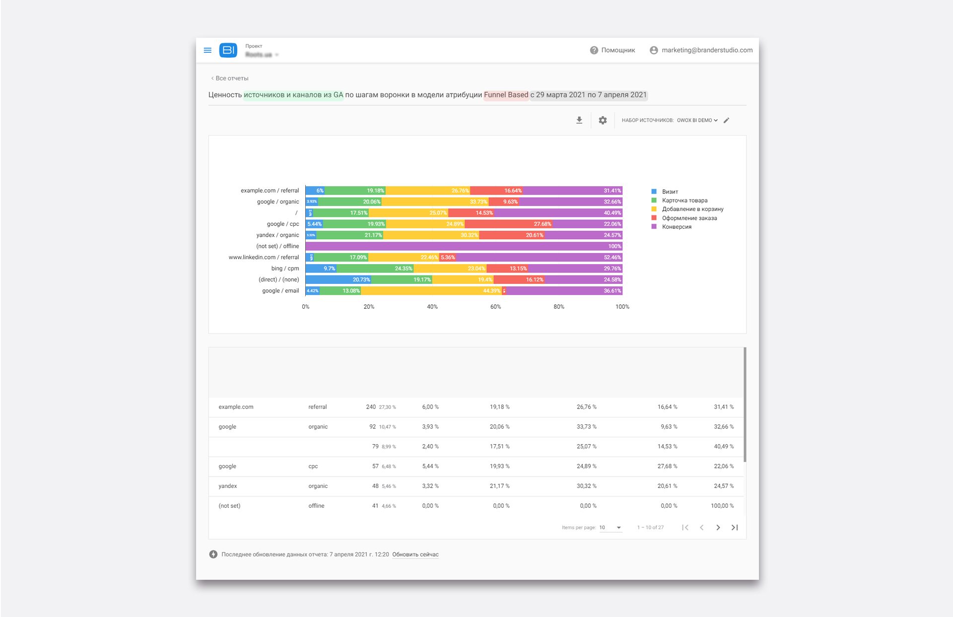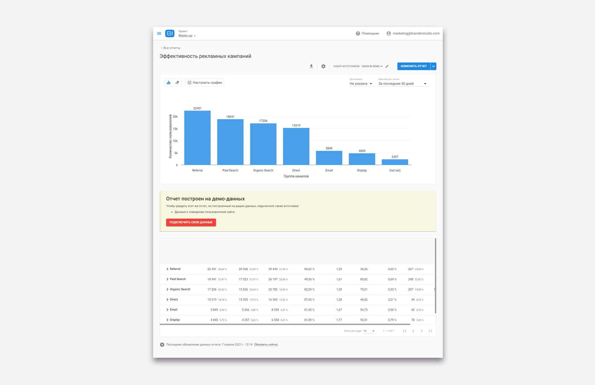 Інтерфейс OWOX BI Smart Data максимально доброзичливий до користувачів. Тепер вашим маркетологам не потрібно використовувати SQL, щоб будувати складні звіти, досить вибрати необхідні інструменти з доступних в системі, а їх там дійсно багато. Когортний аналіз, ROPO, RFM, LTV і звичайно ж все про рекламні кампанії — тільки найпотрібніші з показників. З OWOX можна побачити шлях покупця від першого кліка до покупки, навіть якщо він зробив її офлайн, і створити персоналізовану воронку продажів для вашого бізнесу. Всі дані постійно актуалізуються, і відключити збиткову рекламну кампанію можна буде набагато раніше, як і побачити перспективний напрямок для інвестицій в рекламу.