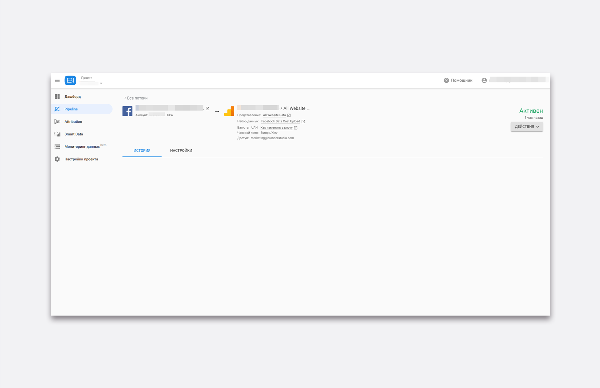 Pipeline звільняє маркетологів від необхідності постійно вивантажувати дані з системи аналітики вручну. Їм потрібно буде всього один раз створити потік, щоб отримувати актуальну інформацію про рекламні кампанії, в тому числі з Facebook, Яндекс та інших джерел. Більш того, Pipeline вміє вивантажувати дані з GA за півроку до початку використання OWOX, щоб у маркетологів був доступ до історичних даних для впевненого старту. Система автоматично розпізнає UTM-мітки рекламних оголошень і конвертує їх в єдиний формат, а якщо знаходить помилку — повідомляє про це. OWOX може автоматично привести витрати до єдиної валюти й використовує для відображення звичний інтерфейс GA. В результаті ви побачите, скільки прибутку щодня приносить кожна кампанія і скоректуєте витрати.