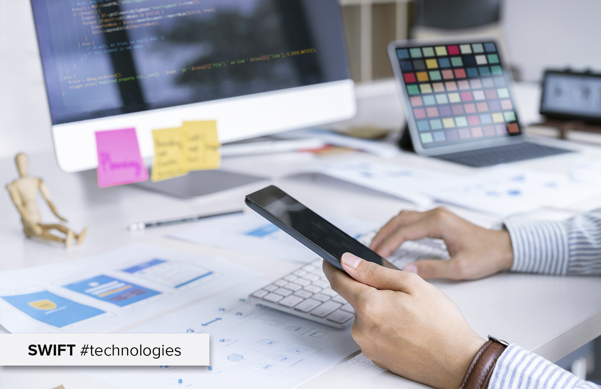 Swift — технологія розробки Apple, офіційна нативна мова, на якій пишуться програми для iPhone, iPad, iMac, MacBook, Apple Watch. Щоб випустити на ринок додаток, опублікувавши його в App Store, вам доведеться вибрати між Swift і Objective-C, нативними мовами для гаджетів Apple. Другий варіант — кросплатформені фреймворки, де можна створювати програми, що працюють на IOS і Android.