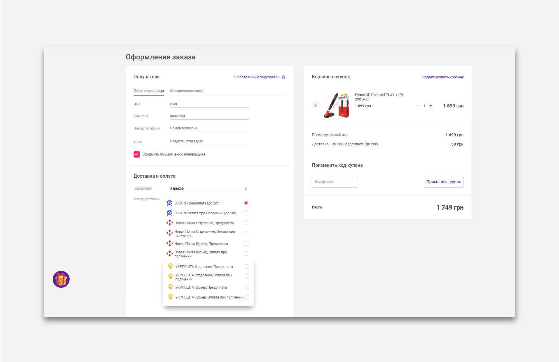 Ukrposhta — головна пошта країни, з більш доступними тарифами, особливо на транспортування габаритних вантажів. Не варто позбавляти клієнтів можливості використовувати звичну і знайому службу доставки. Тим більше, що з API ви економите час на обробку замовлень, як внутрішніх, так і міжнародних, а ще отримуєте 10 % знижки на послуги в рамках програми лояльності.