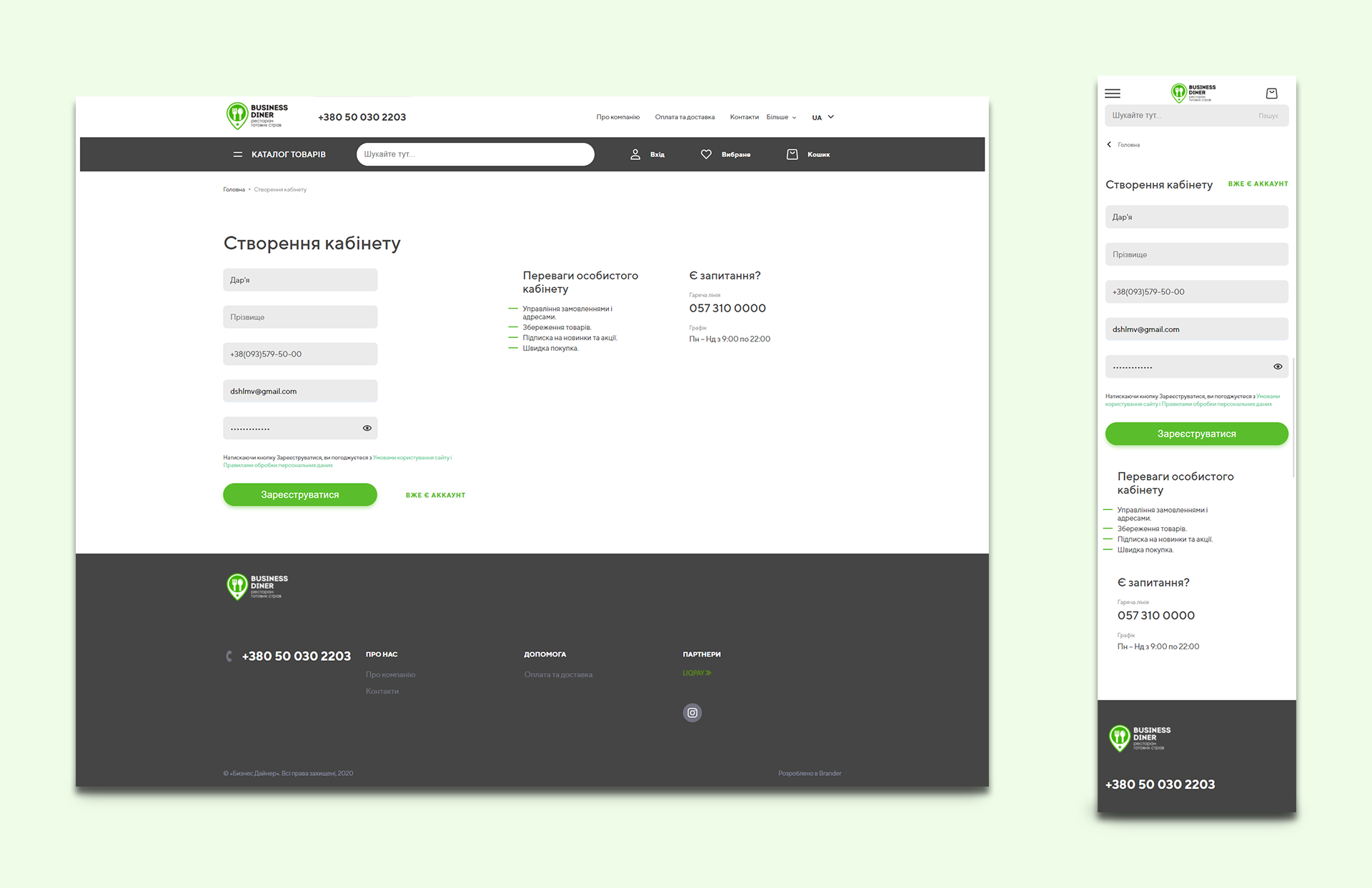 Щодо функціонала. У три етапи спростили реєстрацію для комфортного юзабіліті користувачів.