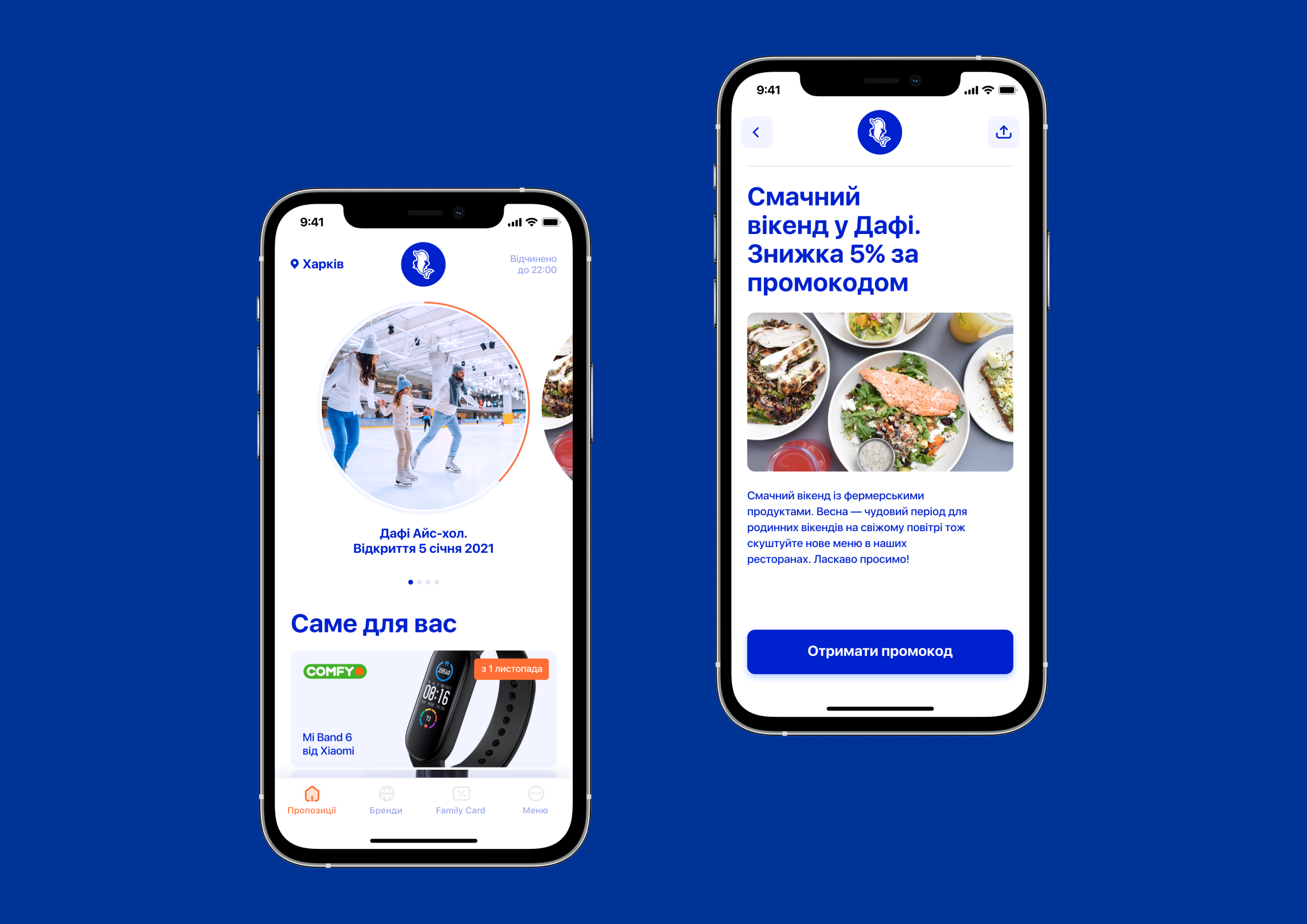 Ви знайдете в ньому все необхідне для полегшення навігації поверхами торгового центру: карту, особливості магазинів та акції. В категорії "Обране" можна додати улюблені бренди та магазини, щоб їх пропозиції завжди були перед очима. Там відвідувач торгового центру зможе знайти свою карту лояльності, яку також називають Family Card.