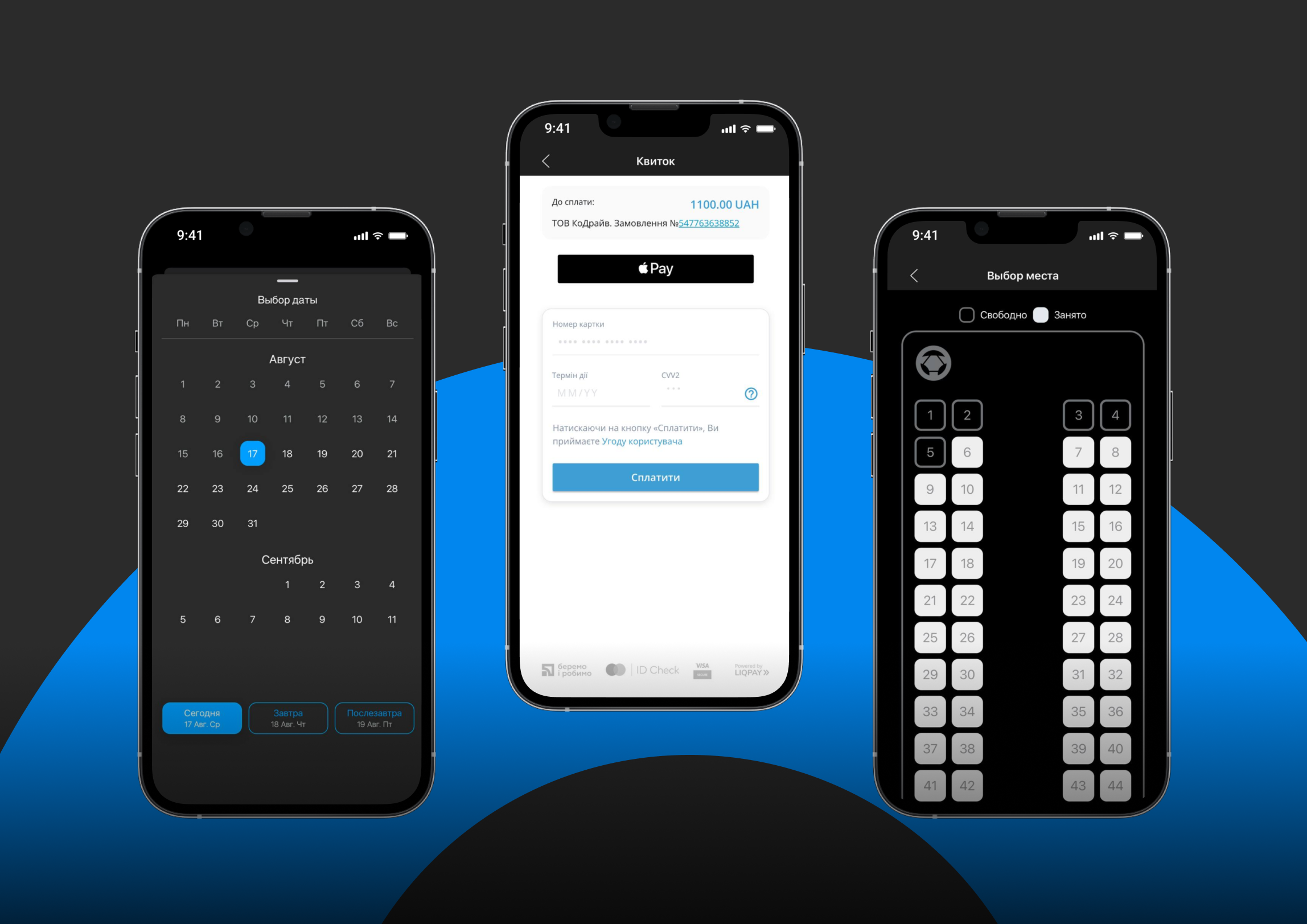 Ми додали у програму повний список інтеграцій від Firebase — консолі для розробки мобільних і веб-додатків, що належить Google. Система має широкий інструментарій та засоби управління додатком. Ми додали протоколи зниження вартості квитка, що управляються з адмін-панелі. Системи LiqPay та Google Pay вибрали як основні.