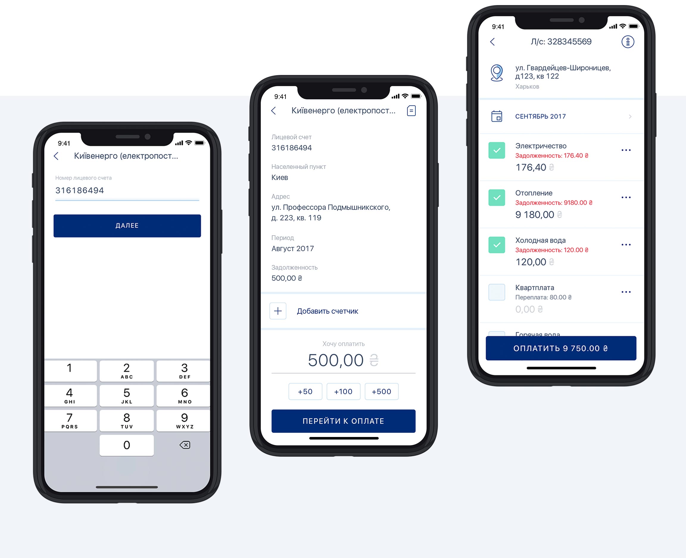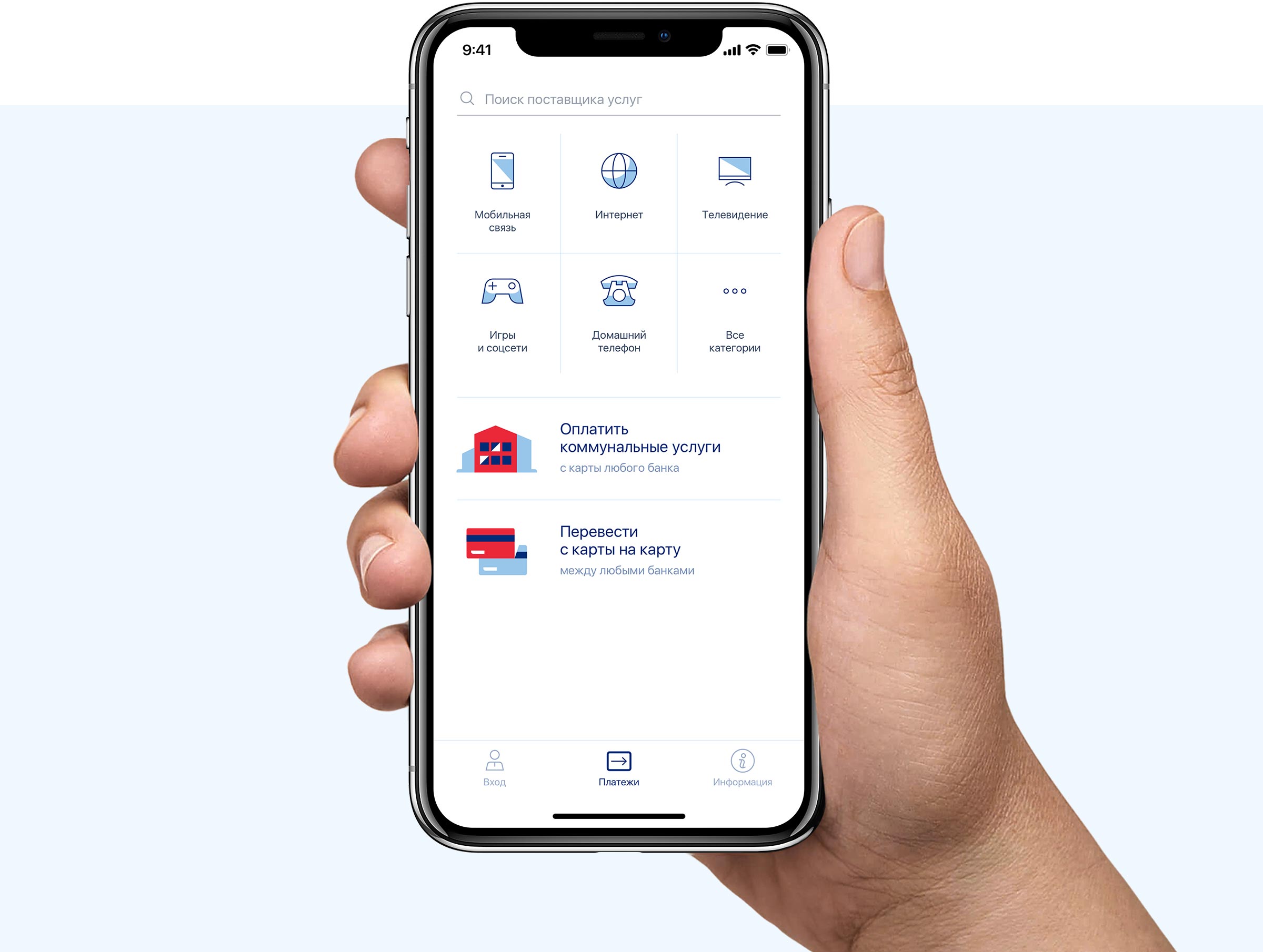 Оплата послуг і переказ грошей в 3 кліка, зручний пошук квитанцій для оплати комунальних послуг, розпізнавач штрих-коду, пошук за адресою, автоматичне визначення геолокації, синхронізація з банківської базою особових рахунків, система безпеки на підставі дослідження OWASP, безпека переказів за допомогою 3DS, 2D.