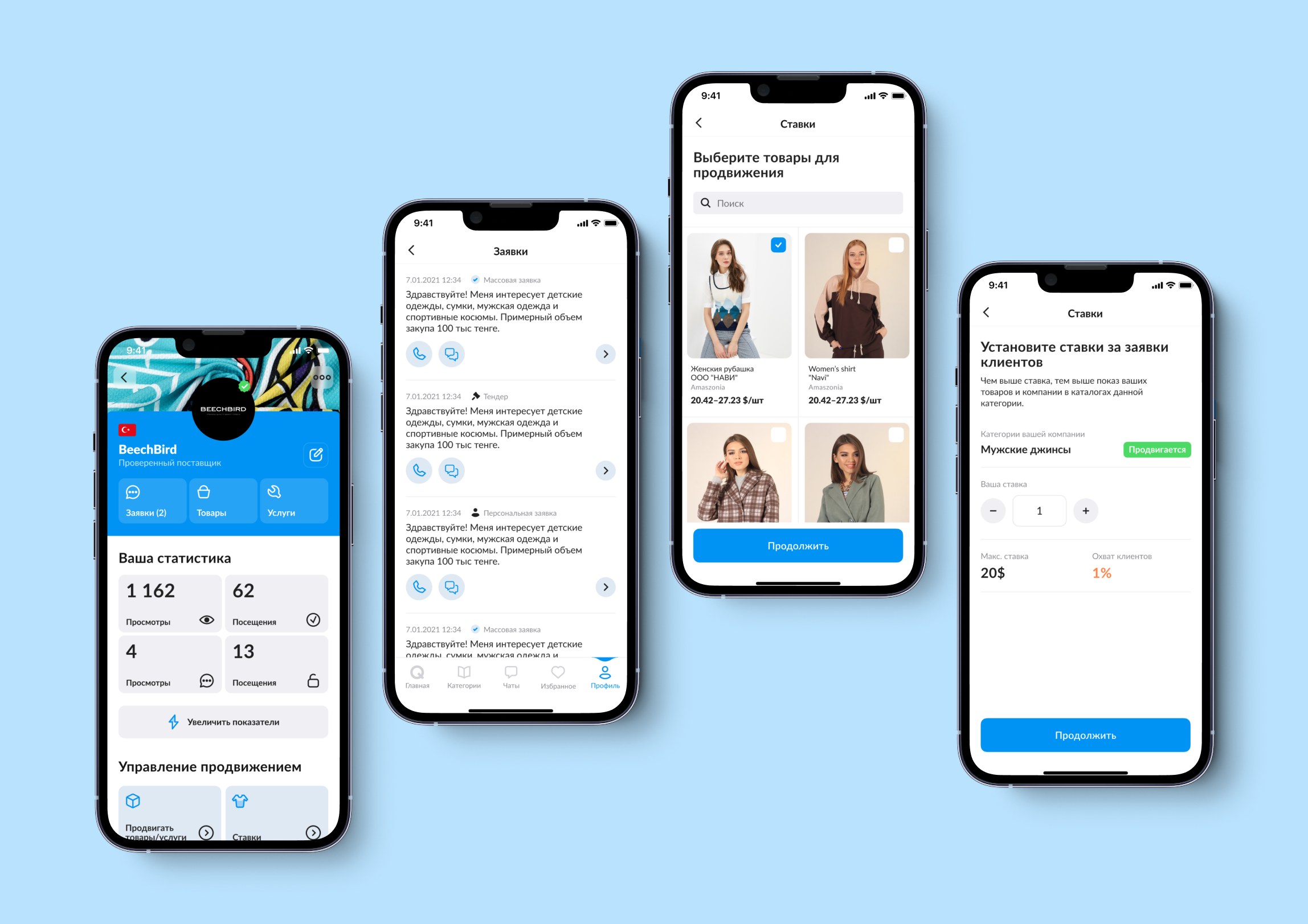 Функція доступна покупцям та продавцям. Продавець може переглядати статистику своєї компанії, отримувати швидкий доступ до деталей угоди, відстежувати подані заявки на співпрацю та створювати власні. Покупець бере участь у тендері та може додавати до особистого кабінету необхідну інформацію про себе (щось на зразок резюме).