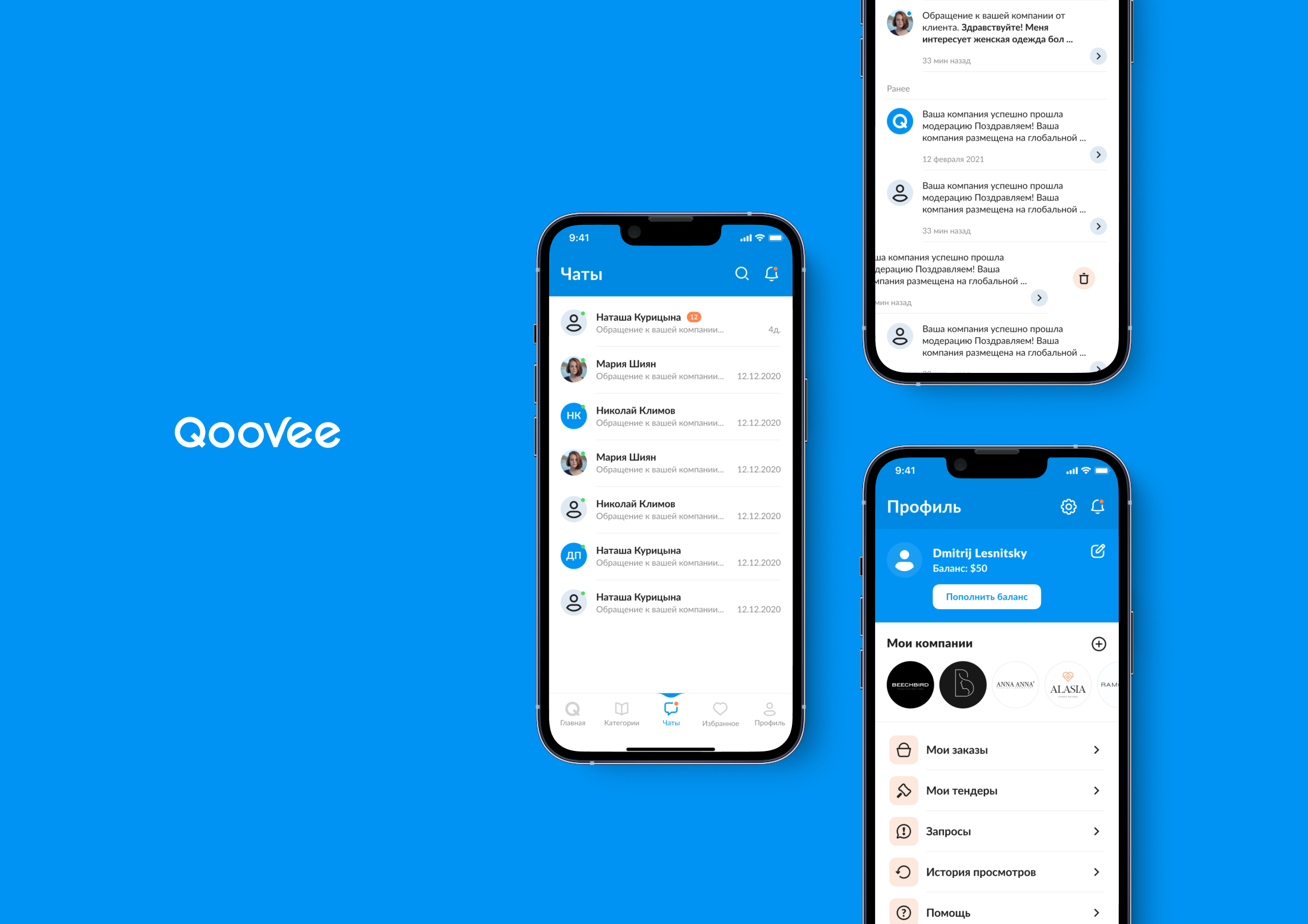 Ідея бізнесу з самого початку була унікальною, тому нам залишалося лише розробити для неї якісний додаток. Після довгих годин досліджень та аналізу конкурентів ми знайшли все необхідне для вирішення завдання. Бізнесменам потрібно все робити швидко, тому ми зосередилися на тому, щоби надати їм швидкісне рішення. У додатку можна швидко відповідати на повідомлення, контролювати бізнес, що цікавить, і створювати власні пропозиції. Мобільний додаток у комбінації з десктопною версією виявився справжнім скарбом для QooVee.