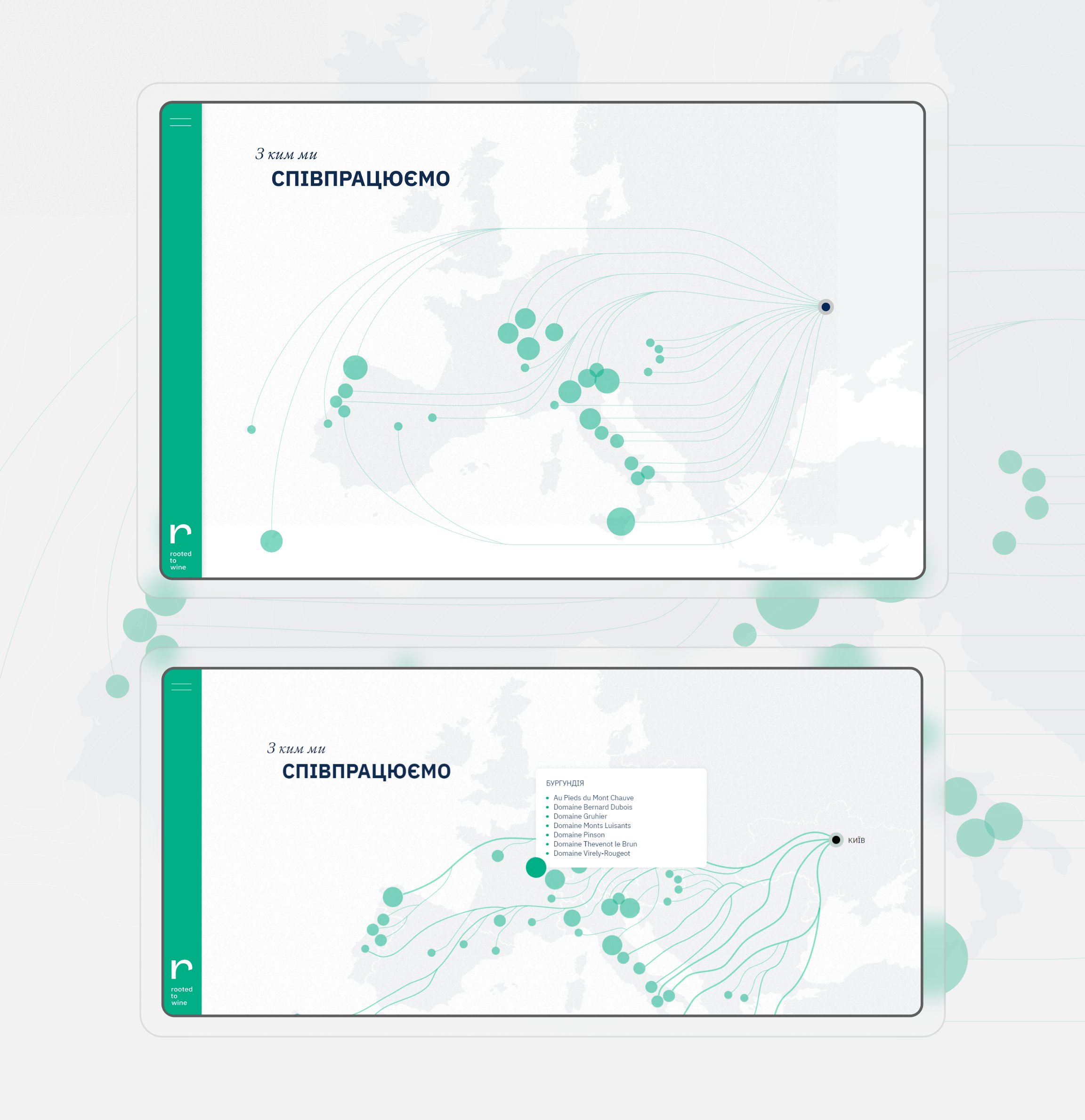 Втілення креативних ідей — це завжди найцікавіша частина. Ми хотіли показати європейську інтеграцію Roots максимально наочно, але з творчою нотою. Після кількох тижнів роздумів ми впровадили інтерактивну карту, на якій із Києва до найбільших країн Європи тягнеться “виноградна лоза”. Наші дизайнери пишаються цим графічним елементом і їх можна зрозуміти. Вийшло дуже круто!