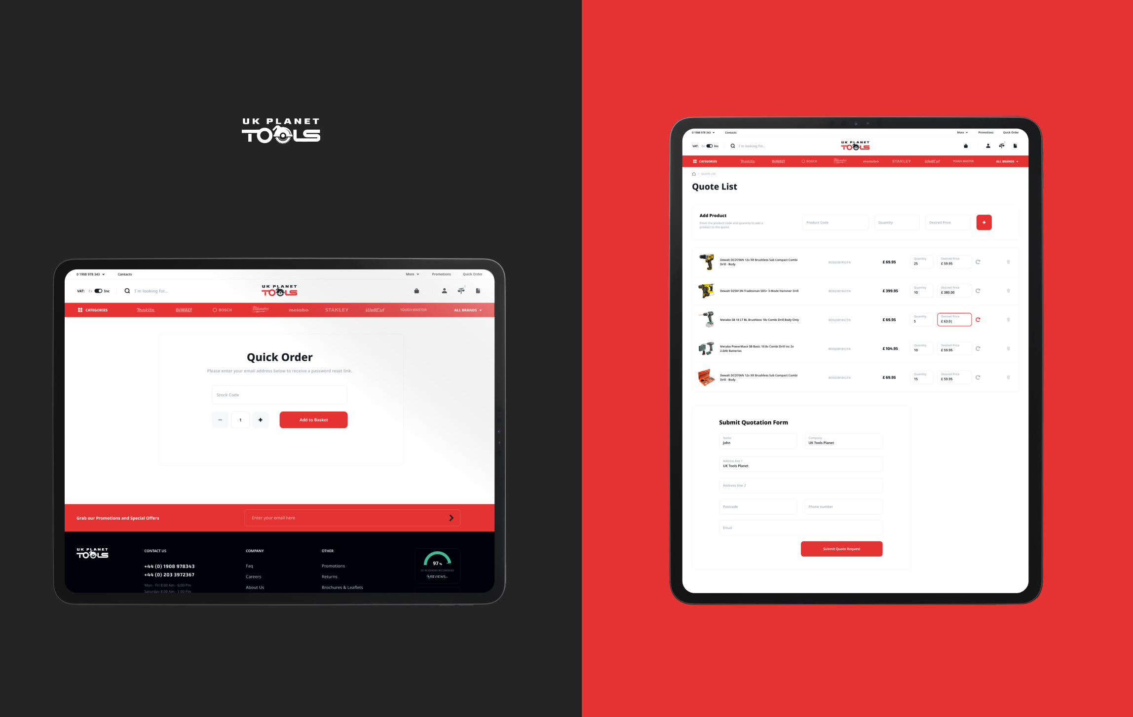 Функціонал для опту ми назвали Quote List. Його суть проста: вводиш код товару, вказуєш скільки інструментів потрібно та оплачуєш. За оптової купівлі UK Planet Tools надає знижку. Наприклад, купуючи 5 болгарок, платиш не 60 умовних одиниць за кожну, а 55.